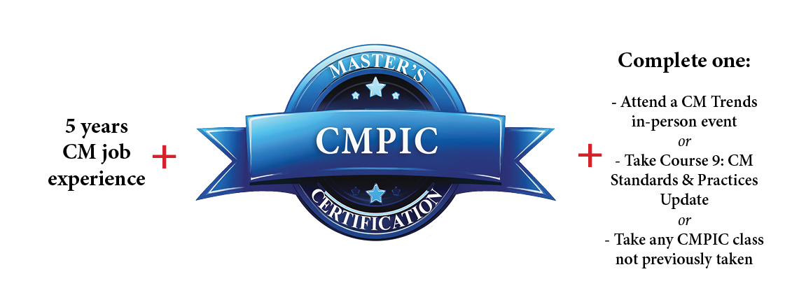 - Complete a CMPIC course not previously attended (standards courses like SAE EIA-649A/B changing to SAE EIA-649C counts as a different course)